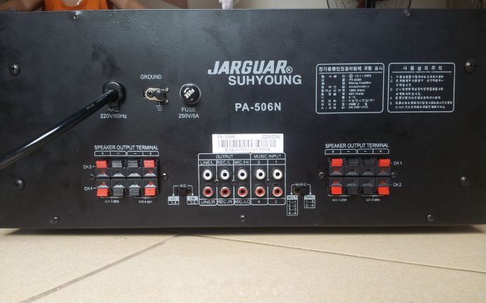 Sản phẩm Amply Jarguar 506N huyền thoại amply karaoke có doanh số tốt nhất từ trước tới nay, phù hợp với gia đình, kinh doanh. Sản phẩm đang ngày càng được người tiêu dùng lựa chọn. Với khả năng sử dụng kèm những đôi loa công suất lớn và có tới 4 CH chạy cùng lúc 2 đôi loa Jarguar PA 506N luôn là sự lựa chọn hàng đầu của karaoke. 506N Là sản phẩm có công suất ra ở 4CH, được dùng nhiều cho các phòng hát Karaoke chuyên nghiệp và gia đình.