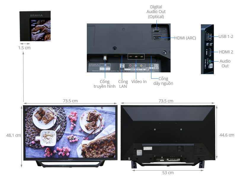 Thông số kỹ thuật Internet Tivi Led Sony KDL-32W600D VN3