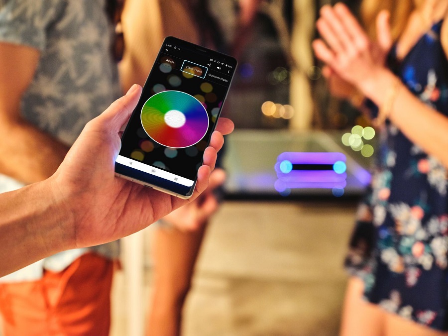 Nghe nhạc trên nhiều thiết bị với Party Chain không dây. Công nghệ BLUETOOTH® hỗ trợ kết nối đến 100 loa không dây cho nhạc và ánh sáng đồng bộ nhịp nhàng