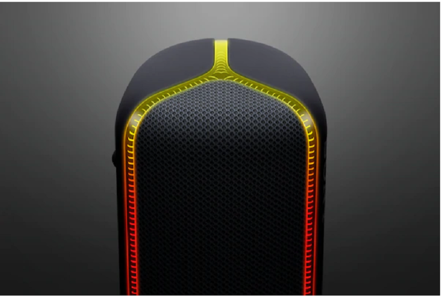 Hai dải đèn led chạy dọc theo hai hướng trên và dưới phần loa ở mặt trước rồi gộp lại ở hai bên tạo cảm giác hiện đại và trẻ trung. Phần mặt