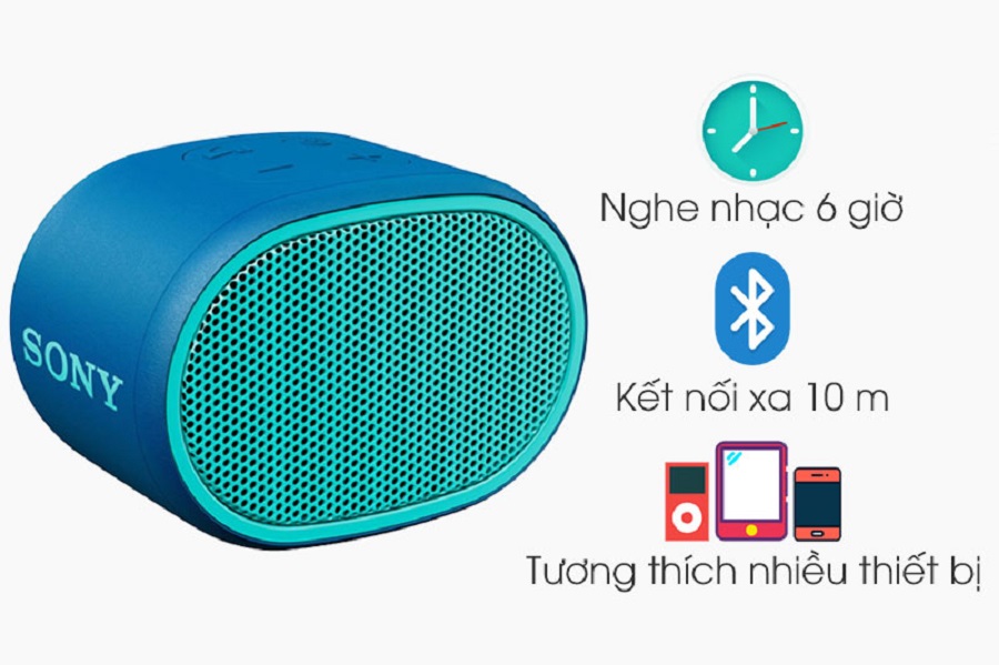 Loa Bluetooth Sony nghe nhạc đến 6 giờ qua Bluetooth hoặc jack cắm 3.5mm kết nối với điện thoại, máy tính bảng, laptop