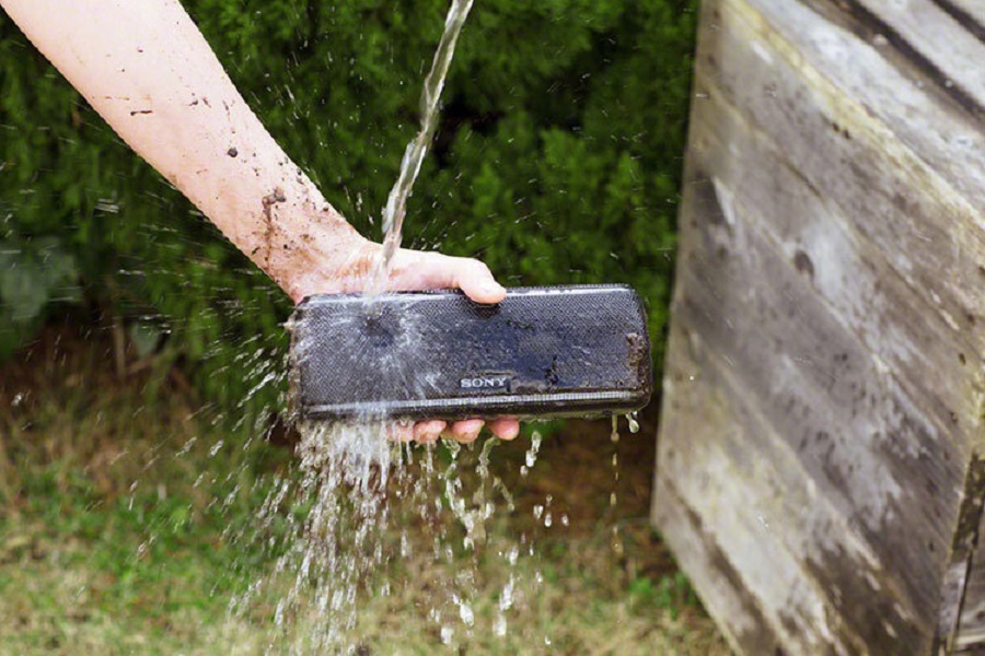 Loa Sony SRS-XB41 được trang bị chuẩn chống nước IP67, nên các cổng kết nối được che bằng một miếng cao su có gioăng dày. Và quan trọng hơn hết giờ đây, người dùng có thể mang loa đi đến các bữa tiệc hồ bơi bởi IP67 có thể kháng nước ở độ sâu 1m trong 30 phút, bạn có thể rửa loa cũng chẳng sao .