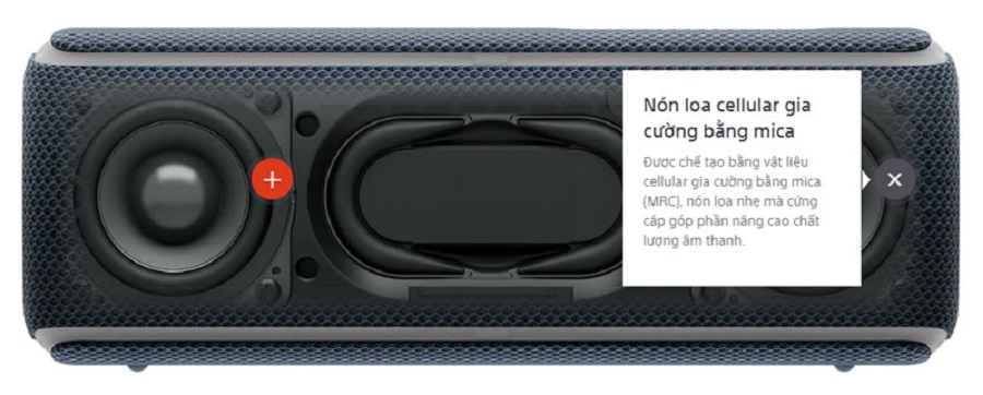 Nón loa SRS XB21 được chế tạo bằng vật liệu cellular gia cường bằng mica (MRC) khiến nó nhẹ mà cứng cáp, góp
