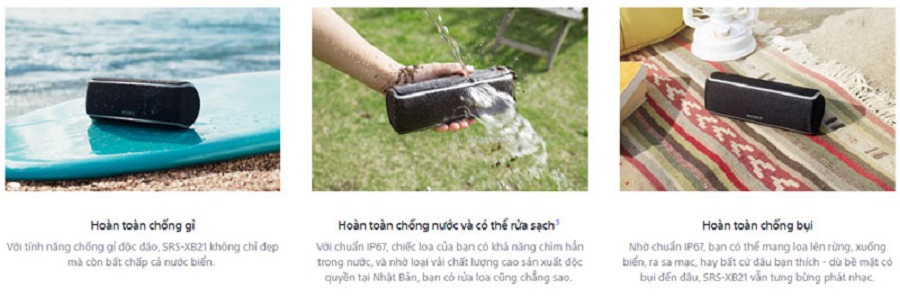 giúp bạn thoải mái sử dụng ở bất kỳ ở đâu hay thời tiết nào. Dù có bị bụi đến đâu hay nước bắn vào thì cũng không hề phải lo lắng về chất lượng âm thanh của loa,