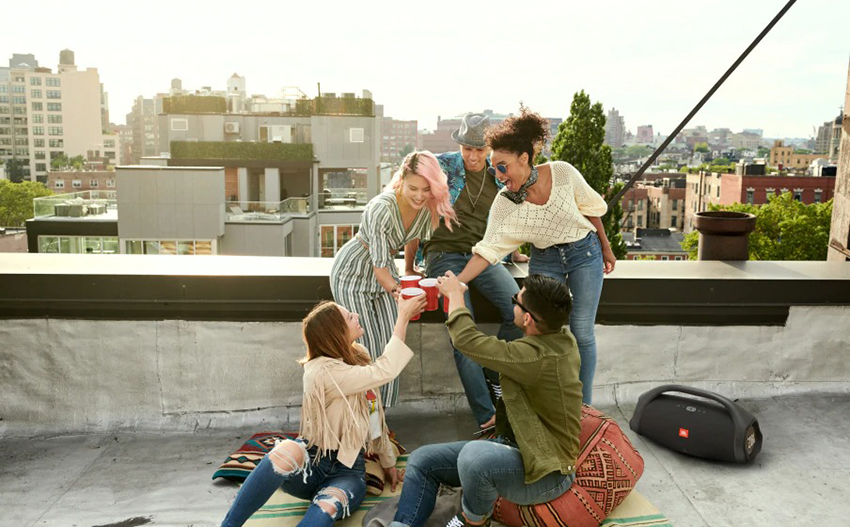JBL đã tích hợp Party Boost, tính năng đặc trưng của các dòng loa di động nhằm tăng cường công suất cho những buổi tiệc ngoài trời hay những sân khấu có quy mô lớn. Hơn nữa, ngoài kết nối không dây thông qua Bluetooth như thông thường, công nghệ JBL Connect + cho phép thiết lập hệ thống liên kết loa với nhau để phát nhạc trong một không gian rộng lớn hoặc đa phòng. Đây chính là một công nghệ được xác nhận kỉ lục của hãng JBL về số lượng các loa di động có thể kết nối với nhau.