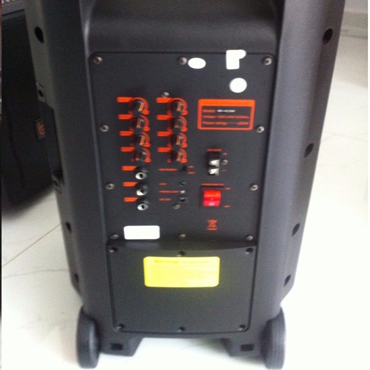 Mặt sau thân loa đầy đủ tiện nghi với bảng điều khiển chức năng. Trên đó có đầy đủ các kết nối blueooth, USB, SD card, Micro SD,....