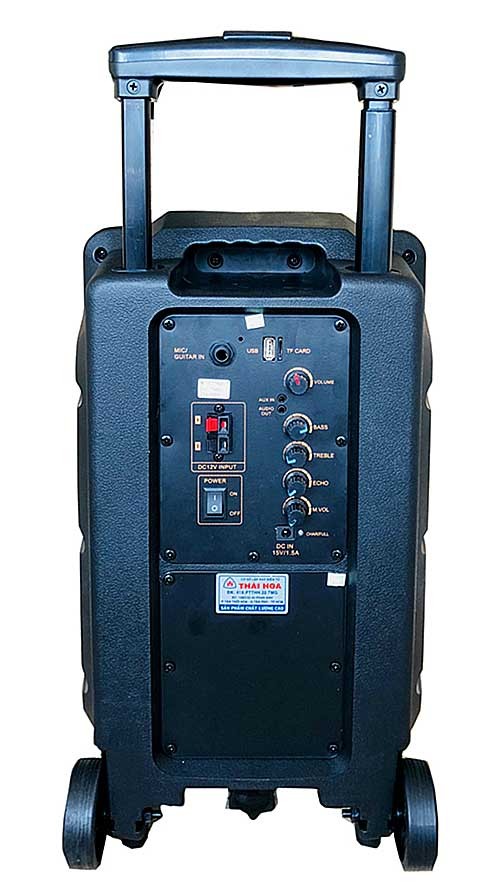 - Nhóm loa dòng loa : loa di động có bánh xe và tay kéo kết nối bluetooth hát karaoke thông dụng, tích hợp loa bass 2 tấc , Chất liệu vỏ thùng loa: nhựa ,Công suất : ........ vui lòng liên hệ để được tư vấn , Kích thước loa bass : bass 2 tấc . Số loa bass: 1 loa -Số loa Treble: 1 loa -Số loa trung: không Chức năng chỉnh trên loa: