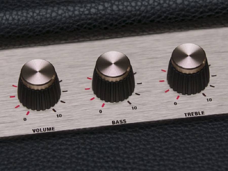 Các nút vặn tinh chỉnh âm thanh Bass/Treble vẫn giữ thiết kế truyền thống, nhưng được thay đổi màu sắc cho phù