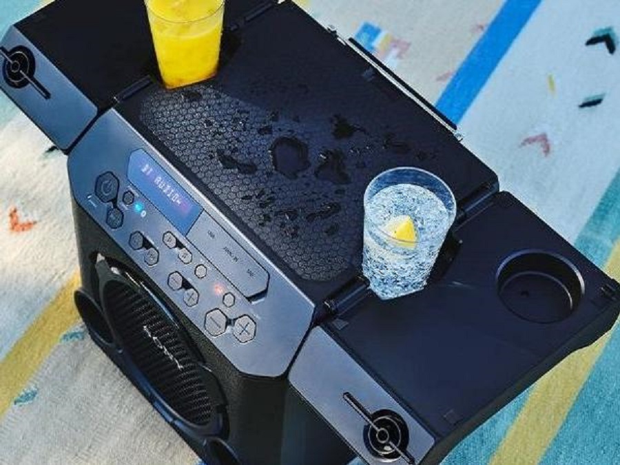 Khi mở nắp trên, loa tweeter tích hợp quay lên trên và hướng ra ngoài, lan tòa âm thanh rộng hơn cho các bữa tiệc ngoài trời.