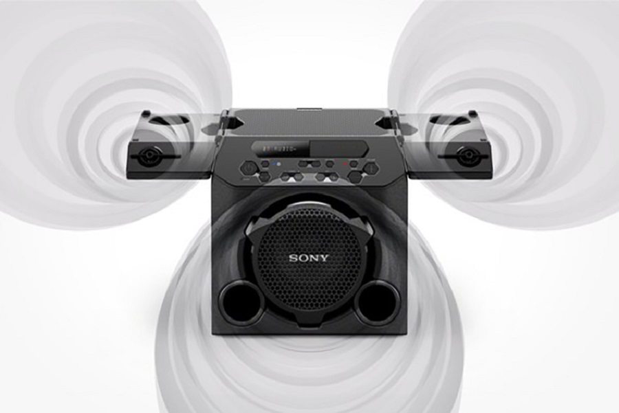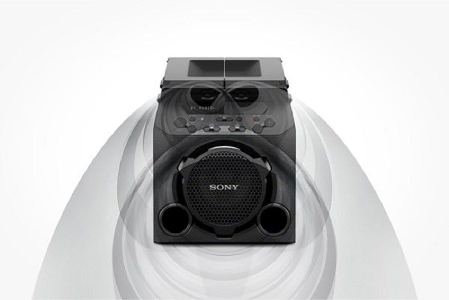 Khi đóng nắp trên và loa tweeter trên quay về phía trước, GTK-PG10 phát âm thanh về phía trước để cho âm lượng lớn và độ rõ nét tối ưu.