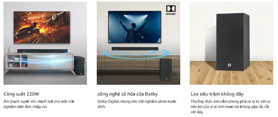 Thanh loa soundbar jbl sb160 có cống suất đạt 2 x 52W
