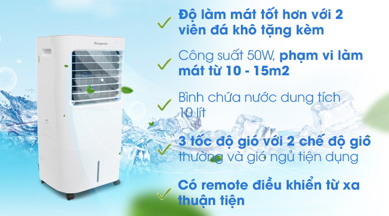 Máy làm mát không khí Kangaroo KG50F07 với thiết kế sang trọng và nhỏ gọn, kèm theo tính di chuyển linh động , hướng đến không gian thoáng mát để người dùng tận hưởng cuộc sống ngày hè.