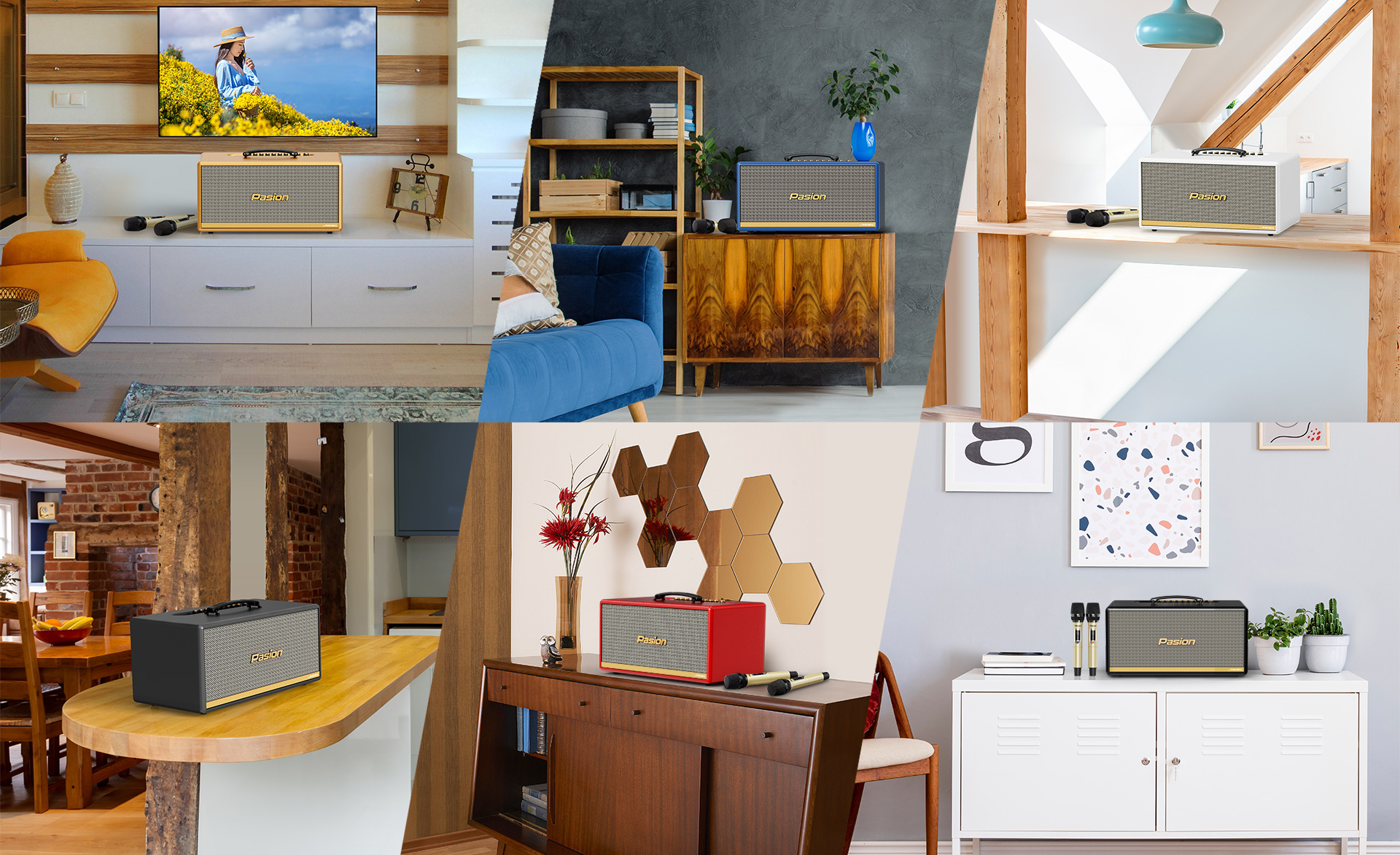 Hộp loa của PASION 2c sử dụng công nghệ sơn cao cấp với 6 phiên bản màu sắc, đại diện cho các phong cách, cá tính riêng: Pale Gold, Racing Red, Frosted Blue, Artic White, Sapphire Black và Charcoal Grey. Màu sơn ấn tượng kết hợp cùng mặt lưới với các sợi màu Vàng ánh kim và Đen xen kẽ tạo hiệu ứng bắt mắt, phối cùng các chi tiết màu Đồng nổi bật.