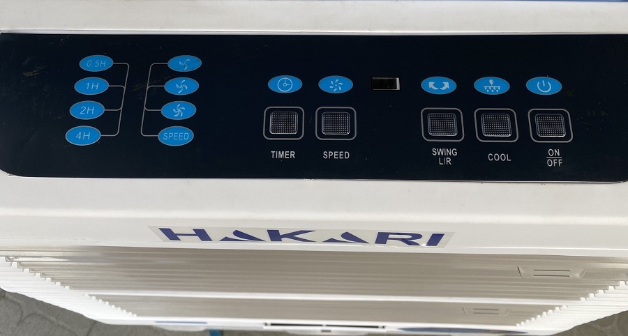 - Quạt điều hòa HAKARI HK-5000 có thiết kế bảng điều khiển nút nhấn ,màn hình hiển thị đèn led dễ nhìn dễ thao tác tăng thời gian sử dụng