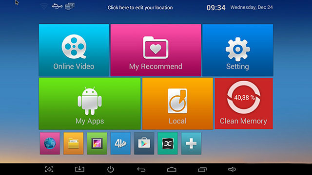 Với giao diện launcher được tùy biến theo giao diện riêng để dễ dàng sử dụng trên TV thông thường. Các biểu tượng to và dễ nhìn cùng với đó là thiết kế đơn giản, và có thể hoàn toàn điều khiển bằng remote, dễ sử dụng với tất cả mọi người.
