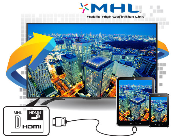- Kho dữ liệu nhạc, hình ảnh và phim trên chiếc điện thoại thông minh của bạn có thể được thưởng thức trên màn hình lớn thông qua kết nối với TV AQUOS bởi dây kết nối HDMI.